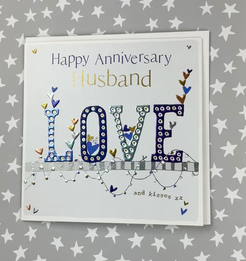 Husband Anniversary Card. Foiled and embossed, with a white envelope.