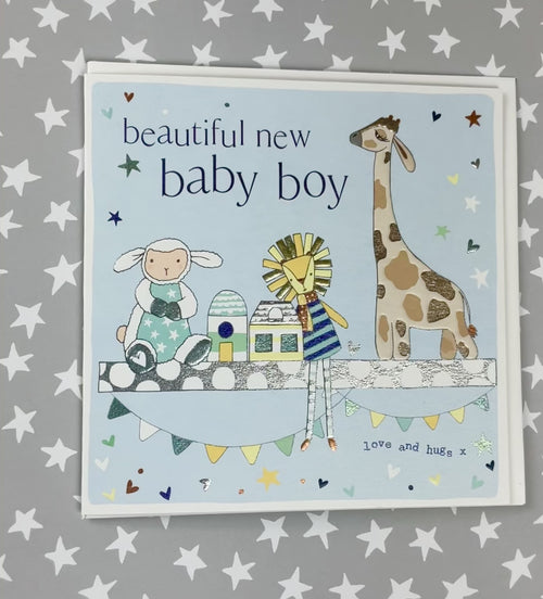 New Baby Boy Card. Foiled and embossed. Supplied with an envelope.