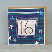 Boy Age_16th Birthday Card. Foiled and Embossed