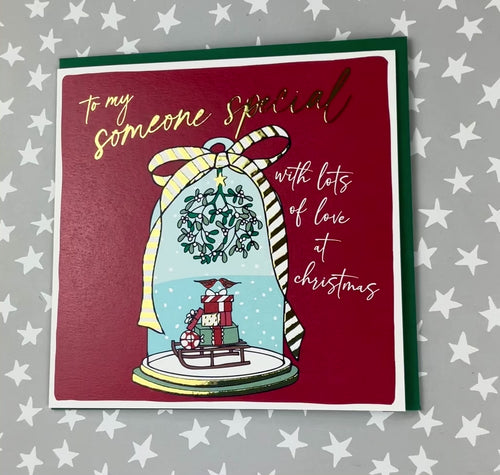 To my someone special - with lots of love at Christmas. Finished with a raised liquid gold. Supplied cello wrapped or nested with an envelope.