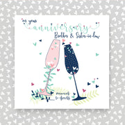 Brother & Sister-in-law anniversary card. Printed on luxury board, hand-finished with glitter and pearls.