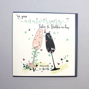 Sister & Brother-in-law anniversary card. Printed on luxury board, hand-finished with glitter and pearls.