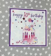 10th Birthday Girl. Foiled with silver. Supplied with a white envelope.