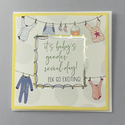 It's Baby's Gender Reveal Day!. Foiled with silver. Supplied with a white envelope.