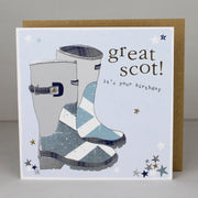Scottish Wellie Birthday Card. Printed on luxury board, foiled and embossed.