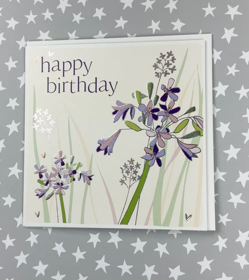 Happy Birthday - Agapanthus. Foiled and embossed. Supplied with an envelope.