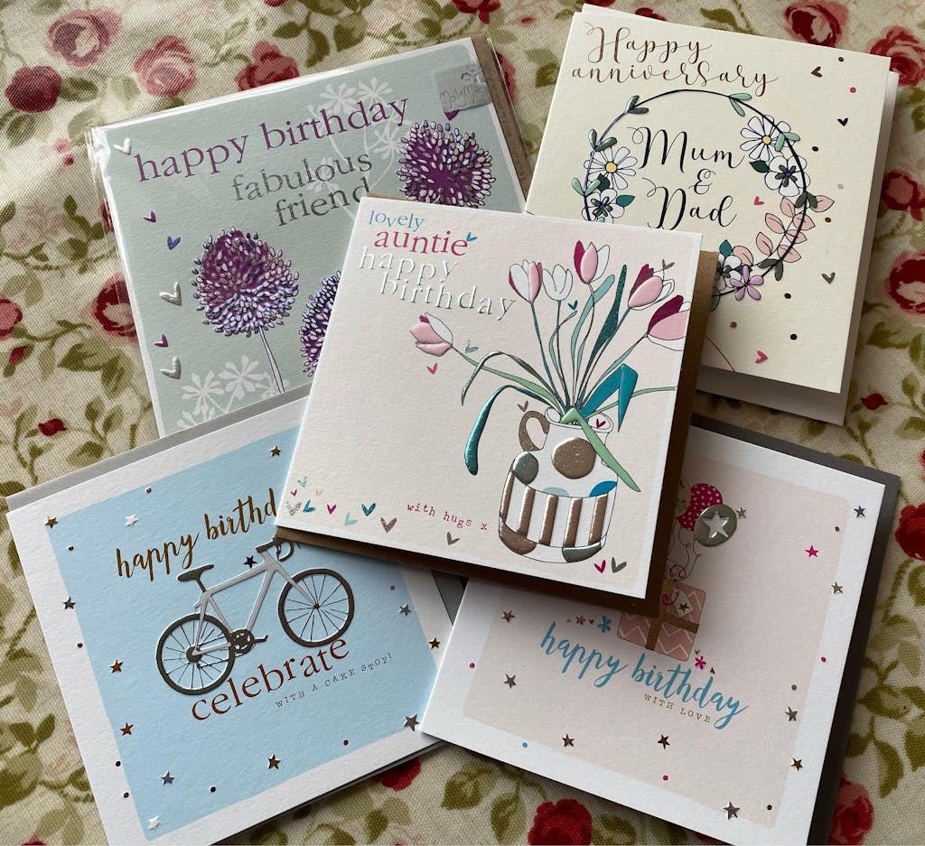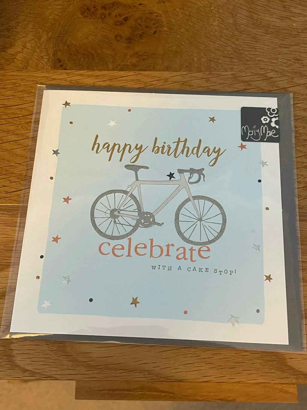 Happy Birthday - Cyclist - Celebrate with cake. Printed on luxury board, embossed and foiled.