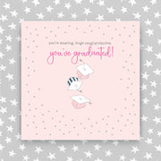 You've Graduated Greeting Card in pink colours. Finished with foiled dots and hand-embellished. Supplied with a luxury envelope.