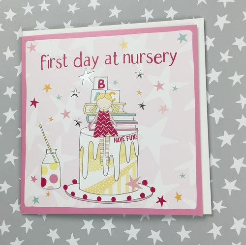 First day at nursery - Pink. Finished with silver foil. Supplied with a white envelope.