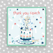 Thank You Coach. Finished with silver foil. Supplied with a white envelope.