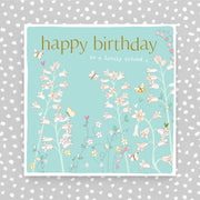 Happy Birthday to a lovely friend greeting card. Foiled, embossed and supplied with a white envelope.