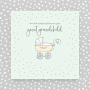Congratulations on your new Great grandchild greeting card. Foiled, hand finished with pearl embellishments and supplied with a luxury envelope.