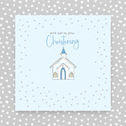 With Love on your Christening blue greeting card. Foiled, hand finished with pearl embellishments and supplied with a luxury envelope.