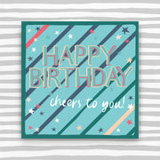 Happy Birthday - cheers to you! Greeting card. Foiled and supplied with a coloured envelope.
