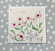 Thank you - Wild flowers. Foiled and embossed. Supplied with an envelope.