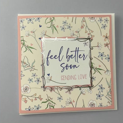 Feel Better Soon - Sending Love. Foiled with silver. Supplied with a white envelope.
