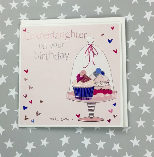 Happy Birthday Granddaughter - Cake Stand. Foiled and embossed. Supplied with an envelope.