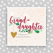 Beautiful Granddaughter at Christmas. Printed on luxury board, embossed and foiled.