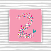 Girl Aged 2 Birthday Card. Printed on luxury board, embossed and foiled.