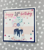 18th Birthday Girl. Foiled with silver. Supplied with a white envelope.