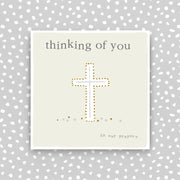 Thinking of you - in our prayers. Printed on luxury board, embossed and foiled.