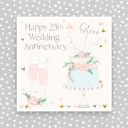 25th Wedding Anniversary. Foiled and embossed. Supplied with an envelope.