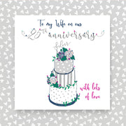 Wife 25th Wedding Anniversary Card. Printed on luxury board, hand-finished with glitter and pearls.