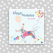 Birthday Sausage Dog. Printed on luxury board, embossed and foiled.