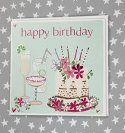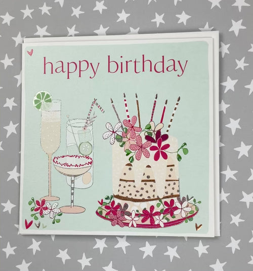 Happy Birthday - Cake and cocktails. Foiled and embossed. Supplied with an envelope.