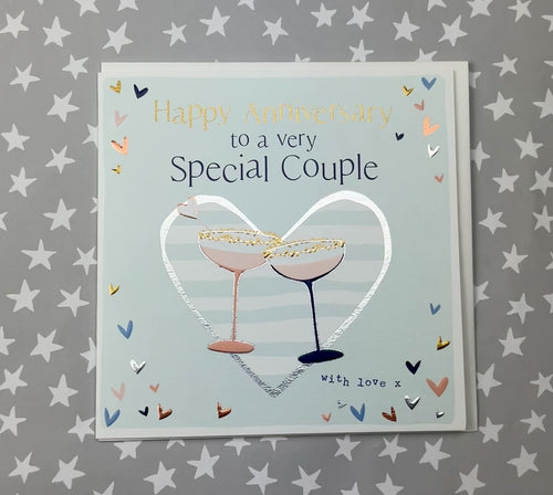Happy Anniversary to a very Special Couple Greeting Card. Foiled and embossed. Supplied Supplied with a white envelope.